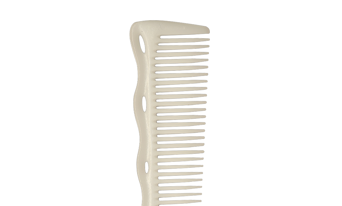 Pettine rifinitore. I denti gradualmente diventano più fitti e più piccoli per permettere di lavorare con precisione sui capelli corti e rifiniture. Flessibile e resistente.